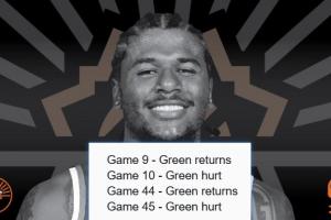体育资讯01月24日讯 太阳与老鹰的比赛正在进行,第二节,杰伦·格林突然走回了更衣室。