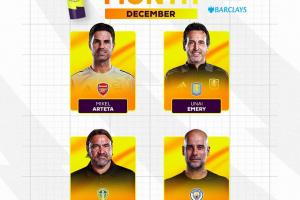 体育资讯01月08日讯 英超官方公布12月最佳主帅候选名单,瓜迪奥拉、阿尔特塔、埃梅里、法尔克入围。