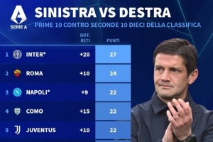 体育资讯1月9日讯 德国转会市场统计了本赛季意甲前10球队对阵下半区球队的积分,并列出排名,国米27分居首,罗马24分次席。