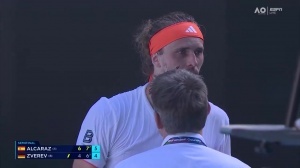 体育资讯01月30日讯 比赛第3盘,阿尔卡拉斯在5-4领先时出现受伤状况,申请医疗暂停,兹维列夫非常不满,用德语连续抗议,还飙英语“bullshit”