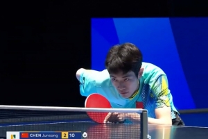 体育资讯2月5日讯 海口亚洲杯男单小组赛第二轮,陈俊菘0-3不敌宇田幸矢,目前战绩一胜一负。