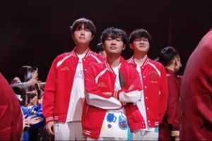 体育资讯2月6日讯 AL对阵BLG登场仪式:双方队员身披红色战袍为观众派发红包。