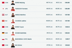 董宇悦:两轮总成绩 1分38秒14,排名第25位。