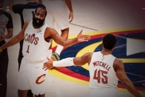 本场比赛哈登砍下22分10板7助,命中扳平三分;米切尔砍下32分10助2断2帽,两罚绝杀比赛。