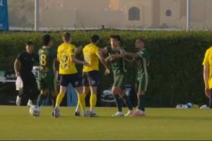 体育资讯02月11日讯 季前热身赛,浙江vs俄超球队罗斯托夫,罗斯托夫99号苏莱马诺夫报复性动作,与刘浩帆发生冲突,吃到红牌,双方爆发大规模冲突,比赛在进行了大概23分钟便宣布终止。