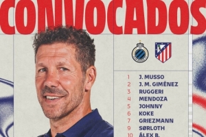 体育资讯2月17日讯 北京时间2月19日凌晨,马竞将在欧冠附加赛首回合比赛中客场对阵布鲁日,马竞公布了此役的球员名单。