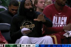 GIF-哈登右手大拇指缠上厚厚的纱布