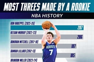 下一篇: 新秀赛季三分命中榜:克尼佩尔第1 穆雷206球第2 米切尔187球第3