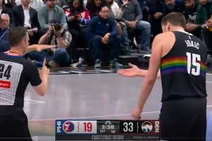 GIF-约基奇推人被吹进攻犯规,他疯狂抱怨被吹T