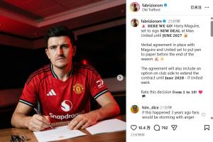 体育资讯03月30日讯 罗马诺用标志性的here we go确认,33岁马奎尔与曼联续约。